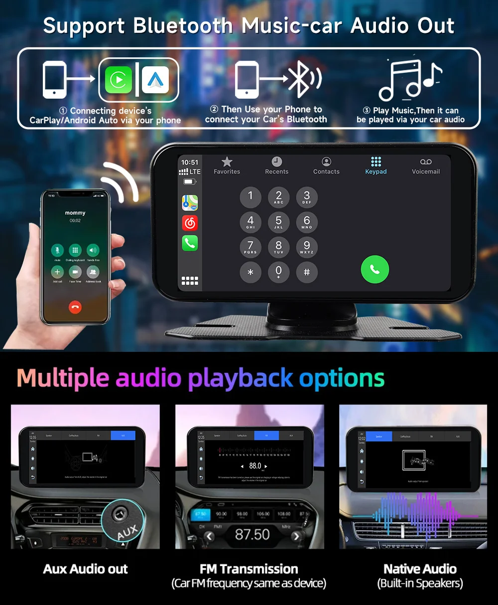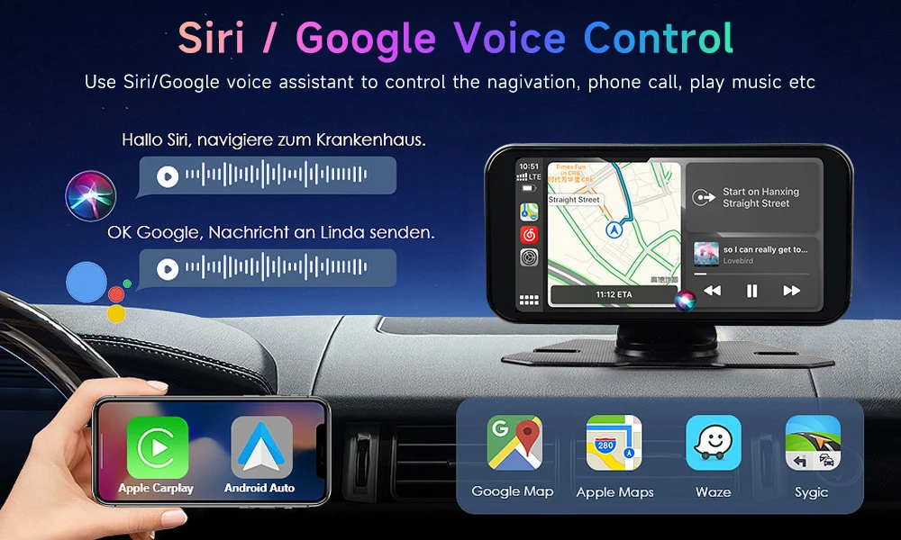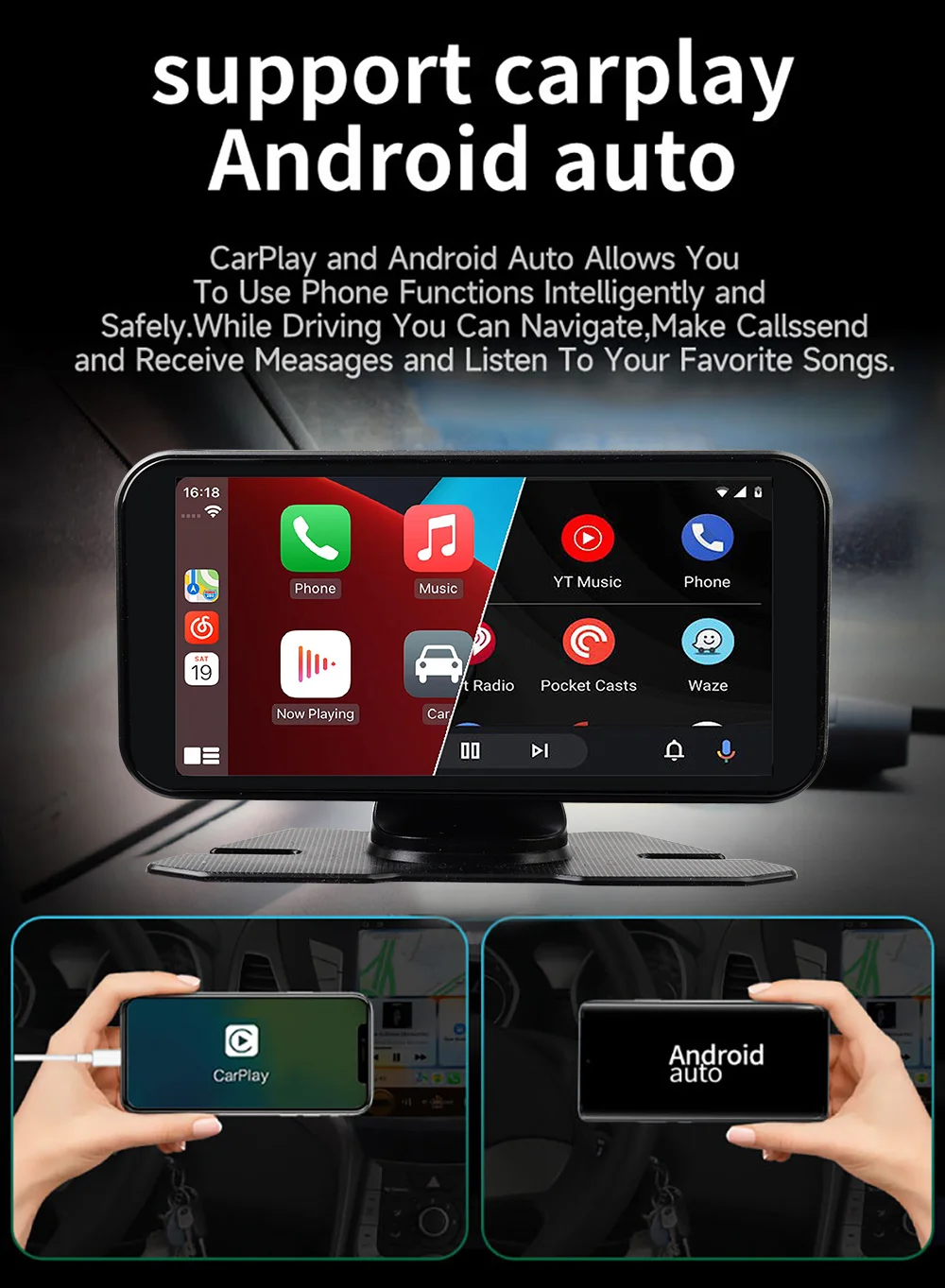 6-Inch Wireless CarPlay & Android Auto Portable GPS Navigation Screen | Universal Touch Multimedia Car Radio